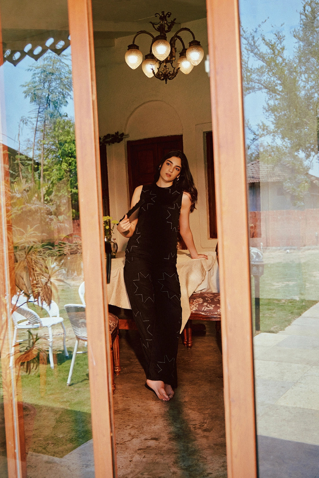 round neck - cotton thread hand embroidery - side slit - lining - concealed back zip - regular fit